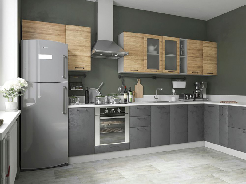 Кухня Лофт тумба СМ800/2 корпус серый, фасад С/СМ800 бетон темный, стол антарес 0,8