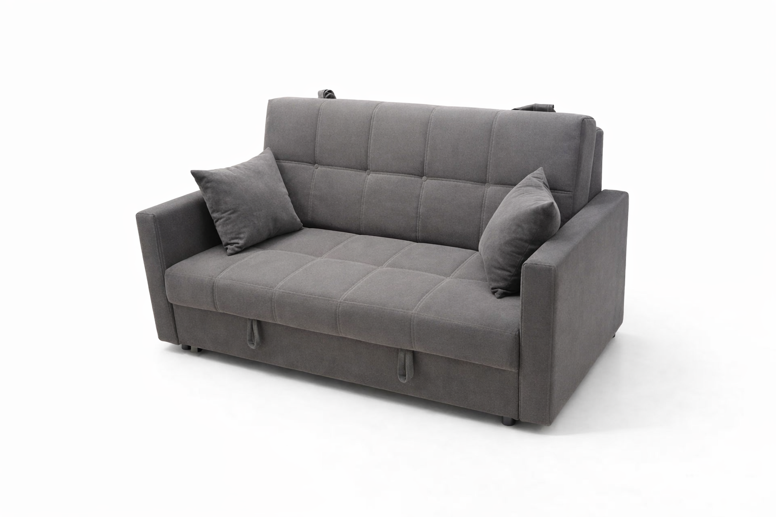 Этот диван-кровать — идеальный выбор для компактных помещений, сочетая стиль и функциональность. Он выполнен в мягкой серой ткани с приятной текстурой, которая добавляет уют в любой интерьер. Сегментированный спинкой с аккуратной прострочкой и две декоративные подушки создают комфорт и гармонию. Под сиденьем скрывается просторный ящик для хранения, что позволяет эффективно использовать пространство. В режиме кровати он легко трансформируется, предлагая удобное место для отдыха. Минималистичный дизайн и четкие линии делают его универсальным и современным дополнением к любой комнате.