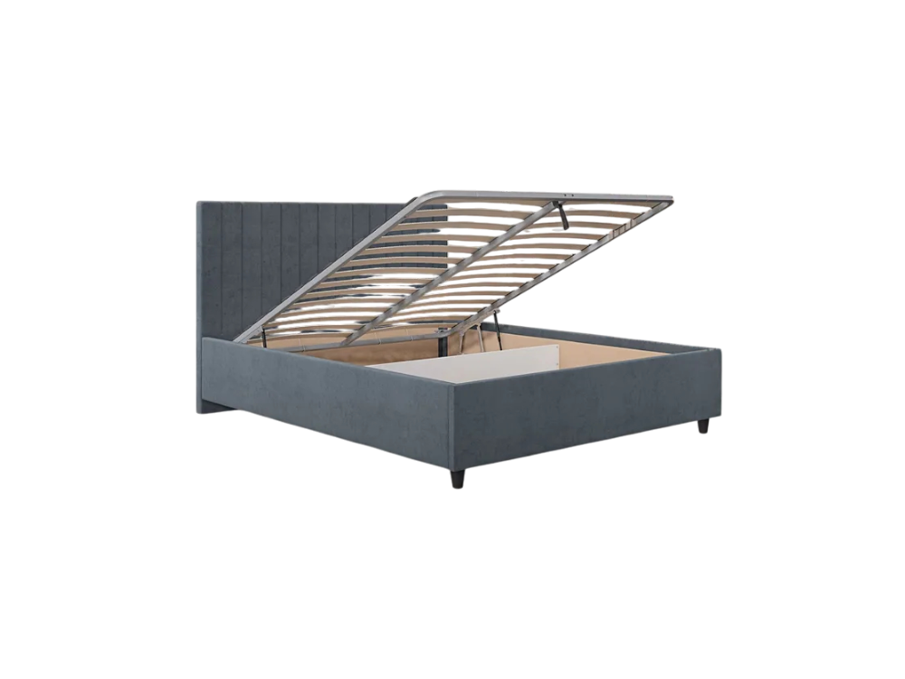 Каркас кровати выполнен в современном стиле, с минималистичным дизайном. Он имеет темно-серый цвет, что делает его универсальным и подходящим для различных интерьеров. Боковые панели каркаса выполнены из дерева или древесного материала, а ламели расположены на расстоянии друг от друга, что позволяет матрасу “дышать” и предотвращает его деформацию.