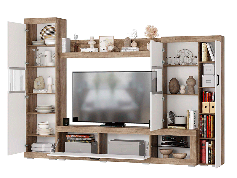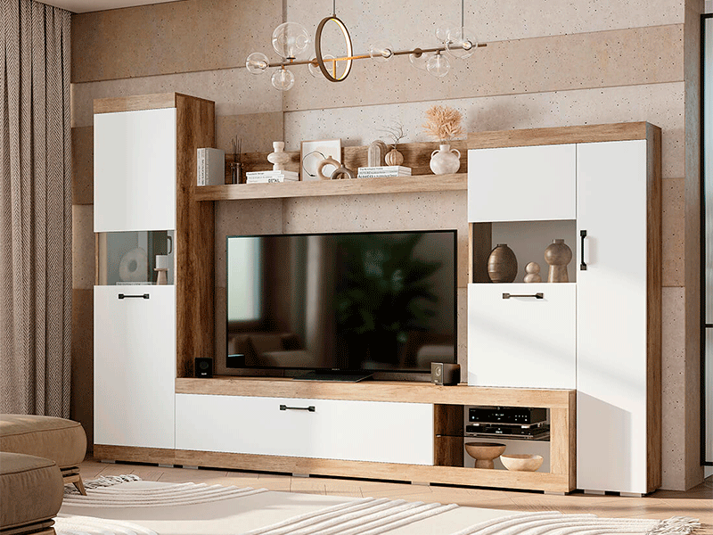(снят/пр) Гостиная “Тесла” ГС – 01 дуб каньон/белый